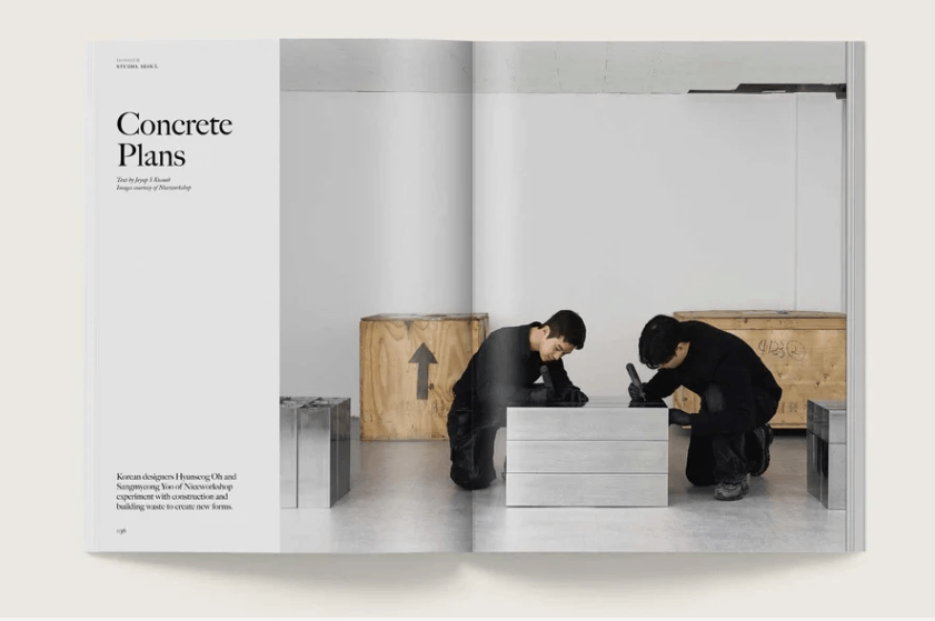 Despite editing this issue from different cities, and often while on the move, the two of us kept returning to the same ideas and were consistently drawn to stories and spaces imbued with a sense of weight and permanence. We found ourselves gravitating towards concrete, cement or steel, materials typically associated with safety and security, sometimes even fortification or isolation. And yet it was the materials’ honesty and tactility that appealed: grounded homes, furniture with heft and buildings that anchor their surroundings.