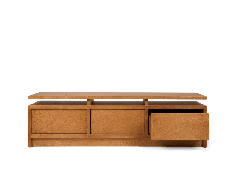 The largest item in the series, the Ratio Console offers three push-to-open drawers on a silent-close rail, introducing substantial space for items best stored away from view. With additional hidden storage in the form of a floating shelf on top of the piece, a gently surprising lightness becomes apparent.