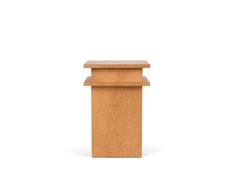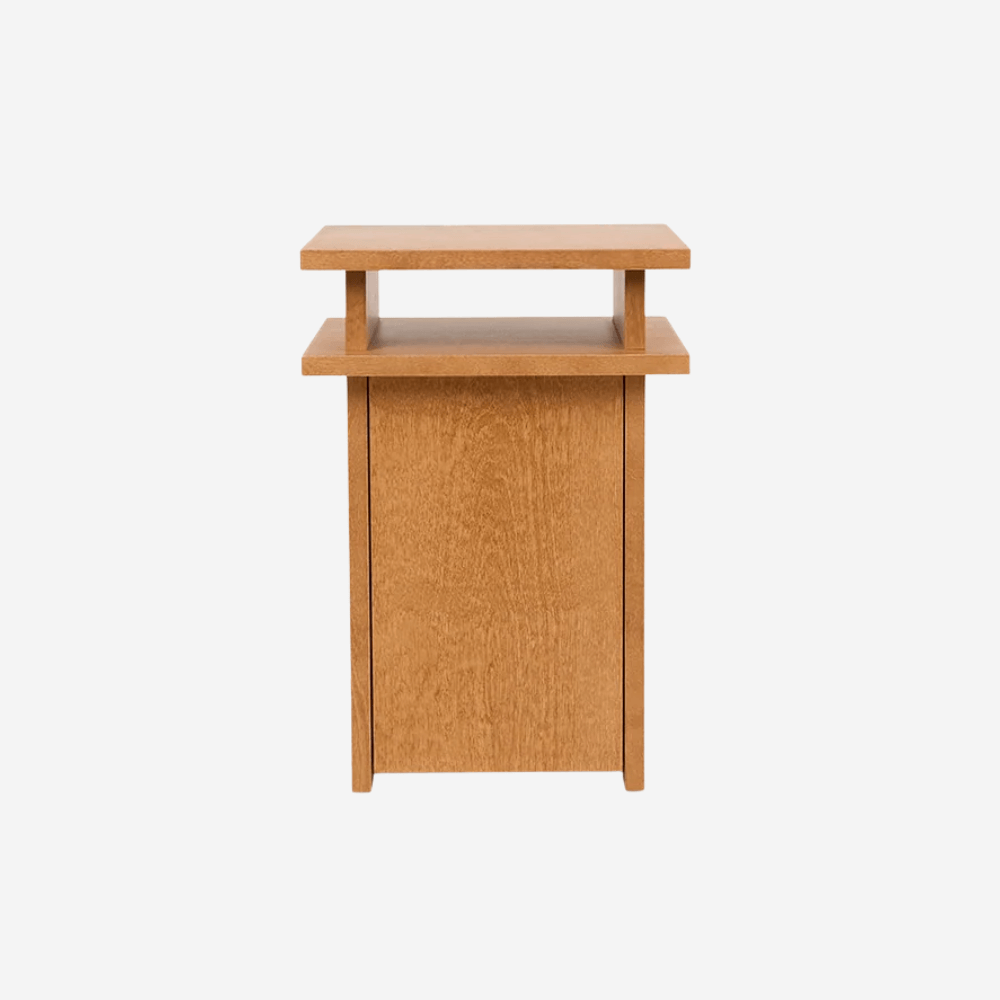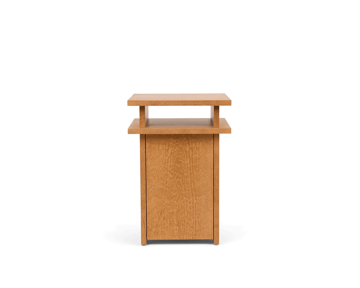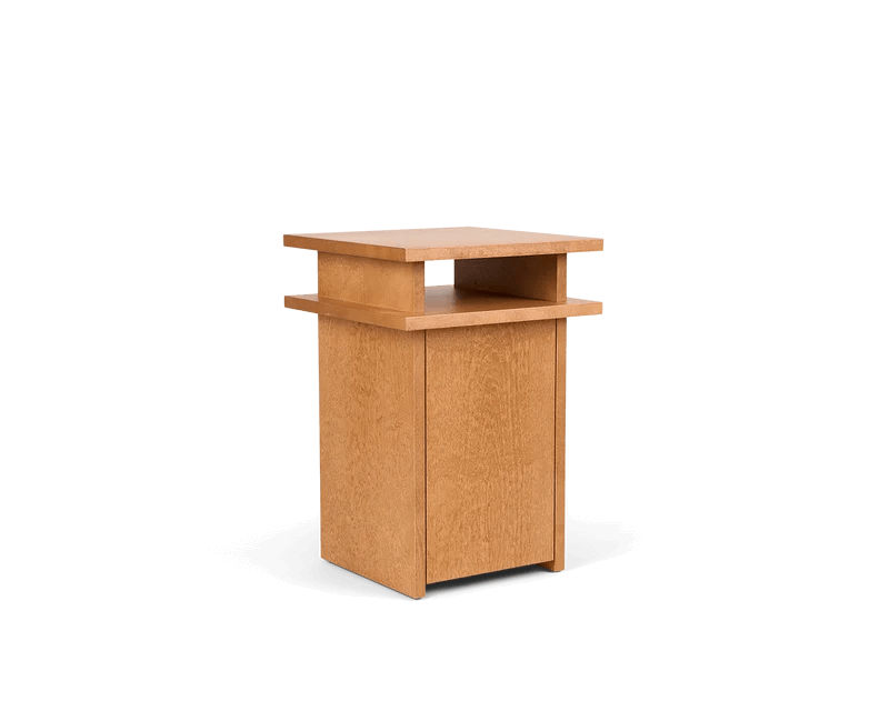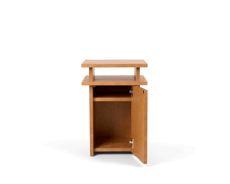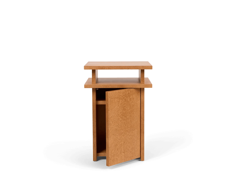 The most compact of the series, the scale of the Ratio Side Table emphasizes geometry at work. For bedside or chair-side, the Side Table is well suited to companion positions, whether at home or in a public or office setting. With open storage on top and a small cabinet below, options abound even within a small space.