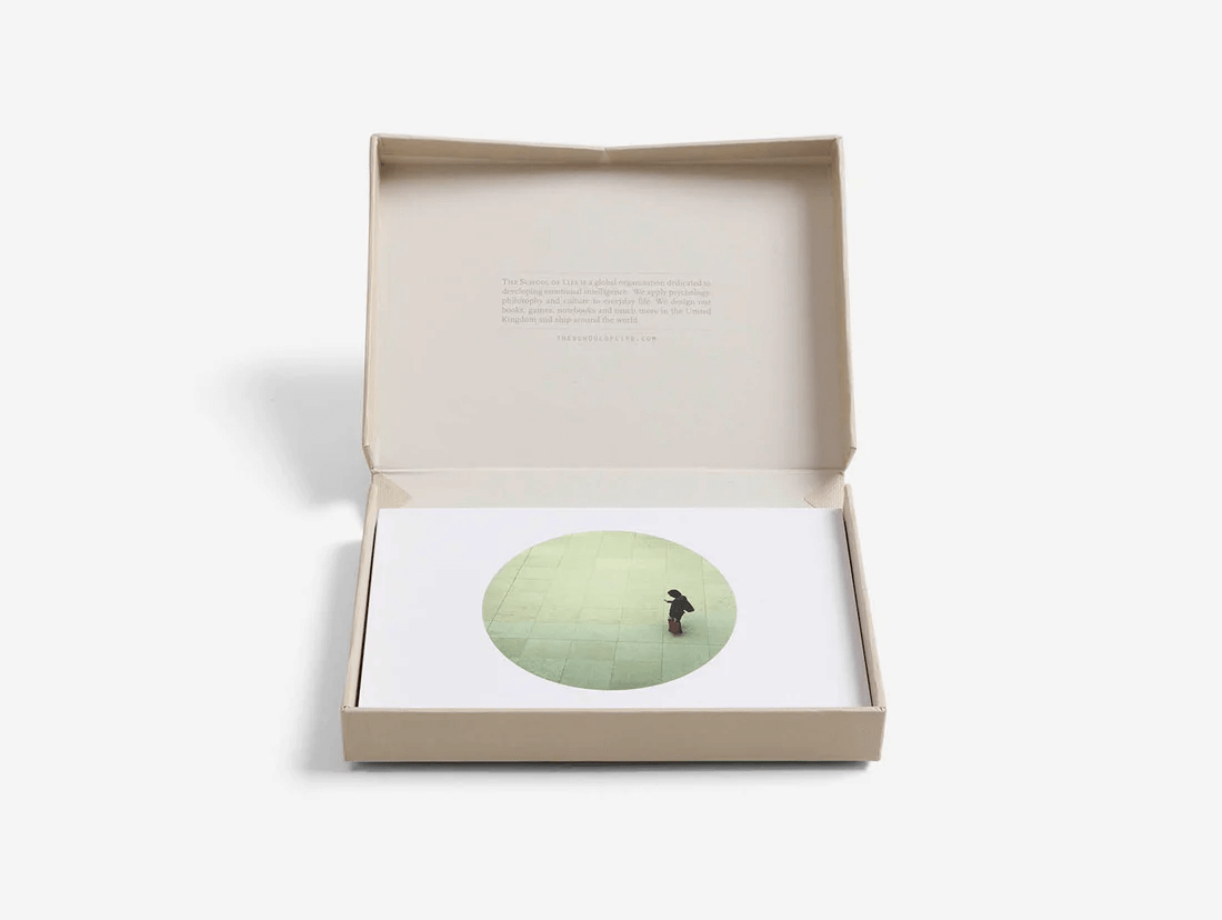 We are constantly at risk of losing perspective around the challenges we face. We mistake what is manageable for a catastrophe; we despair of ourselves too soon; we alienate others by over-reacting; we don’t notice and appreciate what there is still to be grateful for; we forget we’re going to die and that a lot of today’s headache will soon be forgotten. These cards provide eloquent invitations to recover a wiser, calmer, redemptive perspective on our lives.